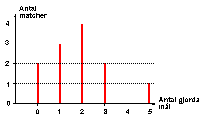 Ex: När tolv matcher var spelade i en bandyserie var antalet matcher med visst antal mål fördelade enligt nedanstående diagram.
